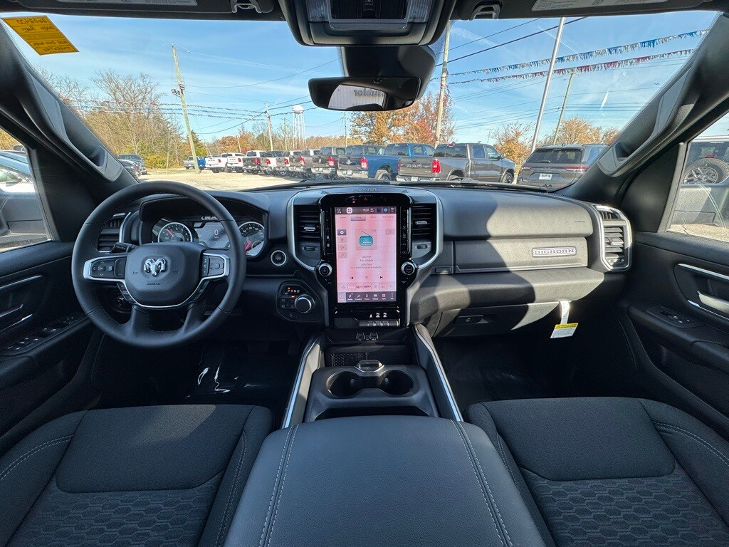 Take advantage of our attractive low-rate financing options. Our access to various Credit Unions and National Banks can provide financing for most credit levels. We can tailor a finance package to fit your needs. To get started, complete our secure online credit application. Big Horn Level 2 Equipment Group (115V Auxiliary Power Outlet, 115V Auxiliary Rear Power Outlet, 12" Touchscreen Display, 2nd Row in Floor Storage Bins, 3 Rear Seat Head Restraints, 4 Way Front Headrests, 400W Inverter, 4G LTE Wi-Fi Hot Spot, 9 Amplified Speakers with Subwoofer, Air Conditioning ATC with Dual Zone Control, Apple CarPlay, Auto Power-Folding Mirrors, Auto-Dimming Exterior Driver Mirror, Auto-Dimming Rear-View Mirror, Black Exterior Mirrors, Black Premium Power Mirrors, Body Color Fender Flares, Bucket Seats, Center Console Parts Module, Cluster 7.0" TFT Color Display, Configurable Drive Mode, Connected Travel and Traffic Services, Connectivity - US/Canada, Convex Wide-Angle Exterior Mirror Insert, Deluxe Cloth Bucket Seats, Disassociated Touchscreen Display, Exterior Mirrors Courtesy Lamps, Exterior Mirrors with Heating Element, Exterior Mirrors with Supplemental Signals, Front Seat Back Map Pockets, Full Length Floor Console, Global Telematics Box Module, Glove Box Lamp, Google Android Auto, GPS Antenna Input, GPS Navigation, HD Radio, Heated Front Seats, Heated Steering Wheel, Integrated Center Stack Radio, Integrated Voice Command with Bluetooth, Leather Wrapped Steering Wheel, LED Dome Lamp with on/Off Switch, LED Footwell Lighting, Manual Adjust 4-Way Front Passenger Seat, Media Hub with 2 Charge Only USBs, Overhead LED Lamps, Power 2-Way Driver Lumbar Adjust, Power Adjust 8-Way Driver Seat, Power Adjustable Pedals, Premium Overhead Console, Radio: Uconnect 5 Navigation with 12.0" Display, Rear 60/40 Folding Seat, Rear Center Armrest, Rear Power Sliding Window, Rear Window Defroster, Remote Tailgate Release, Security Alarm, SiriusXM Radio Service, SiriusXM with 360L, Steering Wheel Mounted Audio Controls, Sun Visors with Illuminated Vanity Mirrors, Universal Garage Door Opener, and USB Host Flip), Night Edition (Accent Color Door Handles, Accent Color Premium Power Mirrors, Accent Color Tailgate Handle, Anti-Spin Differential Rear Axle, Black Exterior Truck Badging, Black Headlamp Bezels, Black Interior Accents, Black Painted Exterior Mirrors Caps, Black Tail Lamp Bezels, Body Color Front Bumper, Body Color Rear Bumper with Step Pads, Dual Exhaust with Black Tips, Grille Black Surround Black Mesh, RAM Grille Badge - Black, and Wheels: 20" x 9.0" Aluminum Painted Clad), Quick Order Package 27Z Big Horn, 4-Wheel Disc Brakes, 48V Belt Starter Generator, 6 Speakers, ABS brakes, Air Conditioning, Alloy wheels, AM/FM radio, Apple CarPlay/Android Auto, Auto High-beam Headlights, Brake assist, Bumpers: chrome, Cloth Bucket Seats, Compass, Delay-off headlights, Driver door bin, Dual front impact airbags, Dual front side impact airbags, Electronic Stability Control, Front anti-roll bar, Front Bucket Seats, Front Center Armrest w/Storage, Front fog lights, Front reading lights, Front wheel independent suspension, Fully automatic headlights, Heated door mirrors, Illuminated entry, Low tire pressure warning, Manual Adjust 4-Way Driver Seat, Manual Folding Exterior Mirrors, MOPAR Front and Rear Rubber Floor Mats, Occupant sensing airbag, Outside temperature display, Overhead airbag, Overhead console, Panic alarm, ParkView Rear Back-Up Camera, Passenger door bin, Passenger vanity mirror, Power door mirrors, Power steering, Power windows, Radio data system, Radio: Uconnec