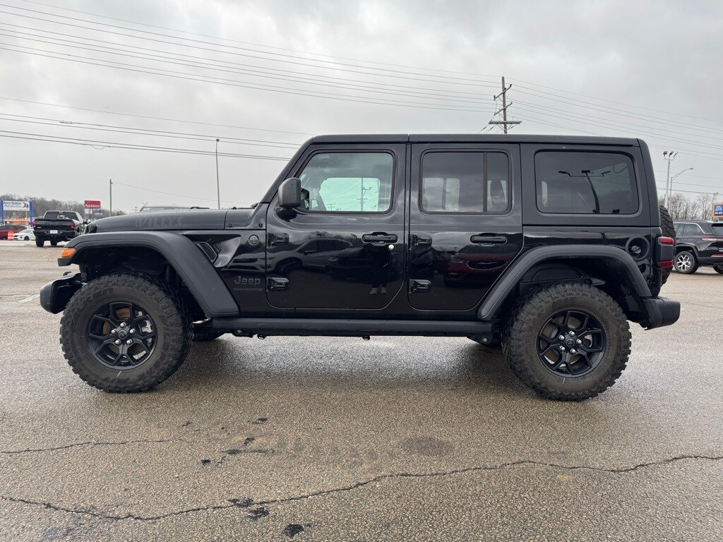 Take advantage of our attractive low-rate financing options. Our access to various Credit Unions and National Banks can provide financing for most credit levels. We can tailor a finance package to fit your needs. To get started, complete our secure online credit application. Convenience Group (2-Door Passive Entry, Front Door Locks, Air Conditioning w/Auto Temperature Control, Air Filtering, Cluster 7.0" TFT Color Display, Emergency/Assistance Call, Heated Front Seats, Heated Steering Wheel, Remote Start System, and Universal Garage Door Opener), Quick Order Package 24W Willys (4-Wheel Drive Swing Gate Decal, 7 & 4 Pin Wiring Harness, 97 MPH Vehicle Max Speed Calibration, Advanced Brake Assist, Automatic Headlamps, Auxiliary Switches, Black Grille, Class II Receiver Hitch, Conventional Differential Front Axle, Corning Gorilla Glass, Dana M210 Wide HD Tube Front Axle, Dana M220 Wide Rear Axle, Daytime Running Lamps LED Accents, Deep Tint Sunscreen Windows, E-Locker Rear Axle, Enhanced Adaptive Cruise Control, Front LED Fog Lamps, Full Speed Forward Collision Warning Plus, Injection Molded Black Rear Bumper, LED Premium Reflector Headlamps, Mold In Color Bumper w/Gloss Black, Molded in Color Rubicon Highline Flare, MOPAR All-Weather Floor Mats, Off-Road Plus Mode, Power Heated Mirrors, Premium Wrapped Steering Wheel, Security Alarm, Sun Visors w/Illuminated Vanity Mirrors, Wheels: 17" x 7.5" Painted Black, Willy's Suspension, and Willys Hood Decal), Safety Group (Auto High Beam Headlamp Control, Blind Spot & Cross Path Detection, LED Taillamps, and ParkSense Rear Park Assist System), Technology Group (DISC) (Alpine Premium Audio System), Trailer Tow & Aux Switch Group, 110 MPH Vehicle Max Speed Calibration, 4-Wheel Disc Brakes, 8 Speakers, ABS brakes, Air Conditioning, AM/FM radio: SiriusXM, Apple CarPlay/Android Auto, Aux Battery, Black 3-Piece Hard Top, Brake assist, Cloth Low-Back Bucket Seats, Compass, Delay-off headlights, Driver door bin, Driver vanity mirror, Dual front impact airbags, Dual front side impact airbags, Electronic Stability Control, Freedom Panel Storage Bag, Front anti-roll bar, Front Bucket Seats, Front Center Armrest w/Storage, Front fog lights, Front reading lights, Illuminated entry, Integrated roll-over protection, Low tire pressure warning, Non-Lock Fuel Cap w/o Discriminator, Normal Duty Suspension, Occupant sensing airbag, Outside temperature display, Overhead airbag, Panic alarm, ParkView Rear Back-Up Camera, Passenger door bin, Passenger vanity mirror, Power steering, Power windows, Radio data system, Radio: Uconnect 5 w/12.3" Display, Rear anti-roll bar, Rear reading lights, Rear Window Defroster, Rear Window Wiper/Washer, Remote keyless entry, Speed control, Split folding rear seat, Steering wheel mounted audio controls, Stop-Start Dual Battery System, Tachometer, Telescoping steering wheel, Tilt steering wheel, Traction control, Trip computer, Variably intermittent wipers, and Wheels: 17" x 7.5" Black Steel Styled.